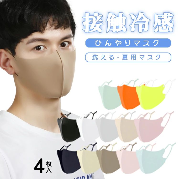 紫外線遮蔽率99% UPF50+(4枚セット)接触冷感マスク 涼しい 冷感