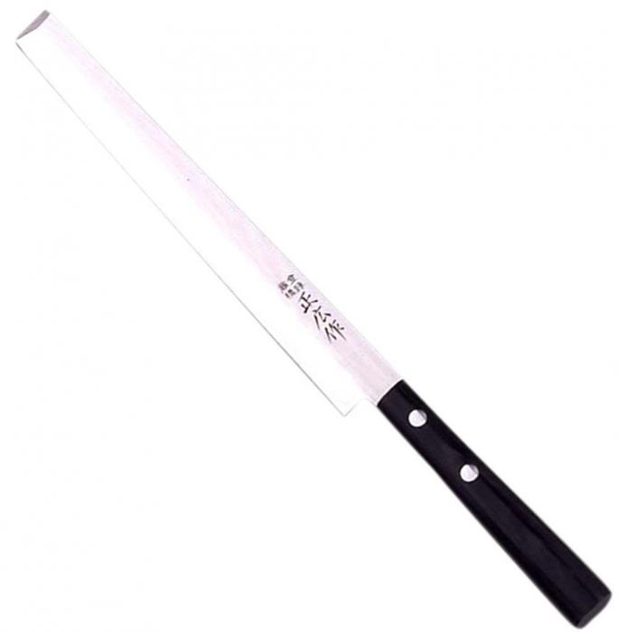 錆びに強くお手入れも簡単な柳刃包丁です。柳刃は刃が鋭いので、繊維を潰さず切り付ける事ができ、本来の味を引き出します。