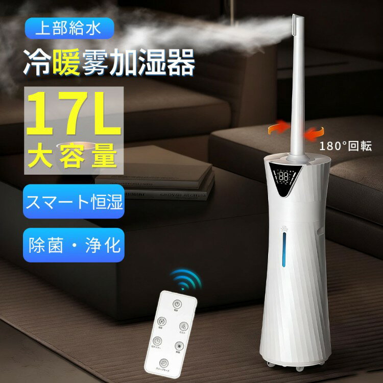 加湿器 超音波加熱式 大容量17L 空気清浄機 花粉対策 UVライト付き 除菌 ハイブリッド式加湿器・・・
