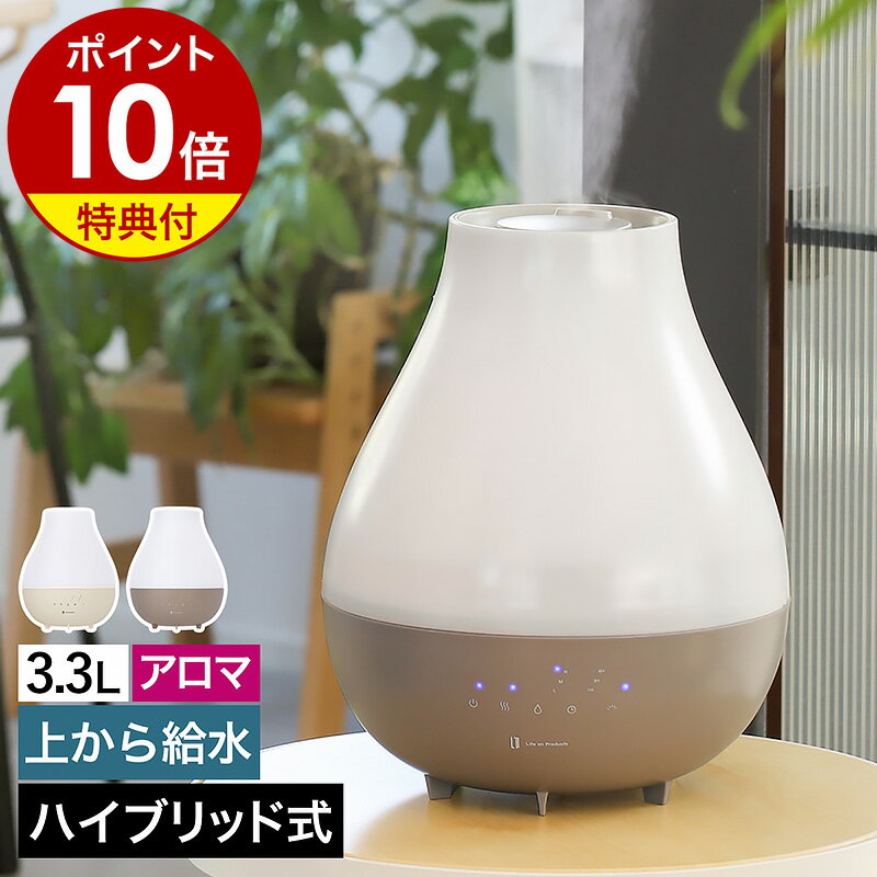 【特典付】ハイブリッド 加湿器 加熱 超音波 コンパクト 3.3L アロマ 上から給水 加湿機 卓上・・・