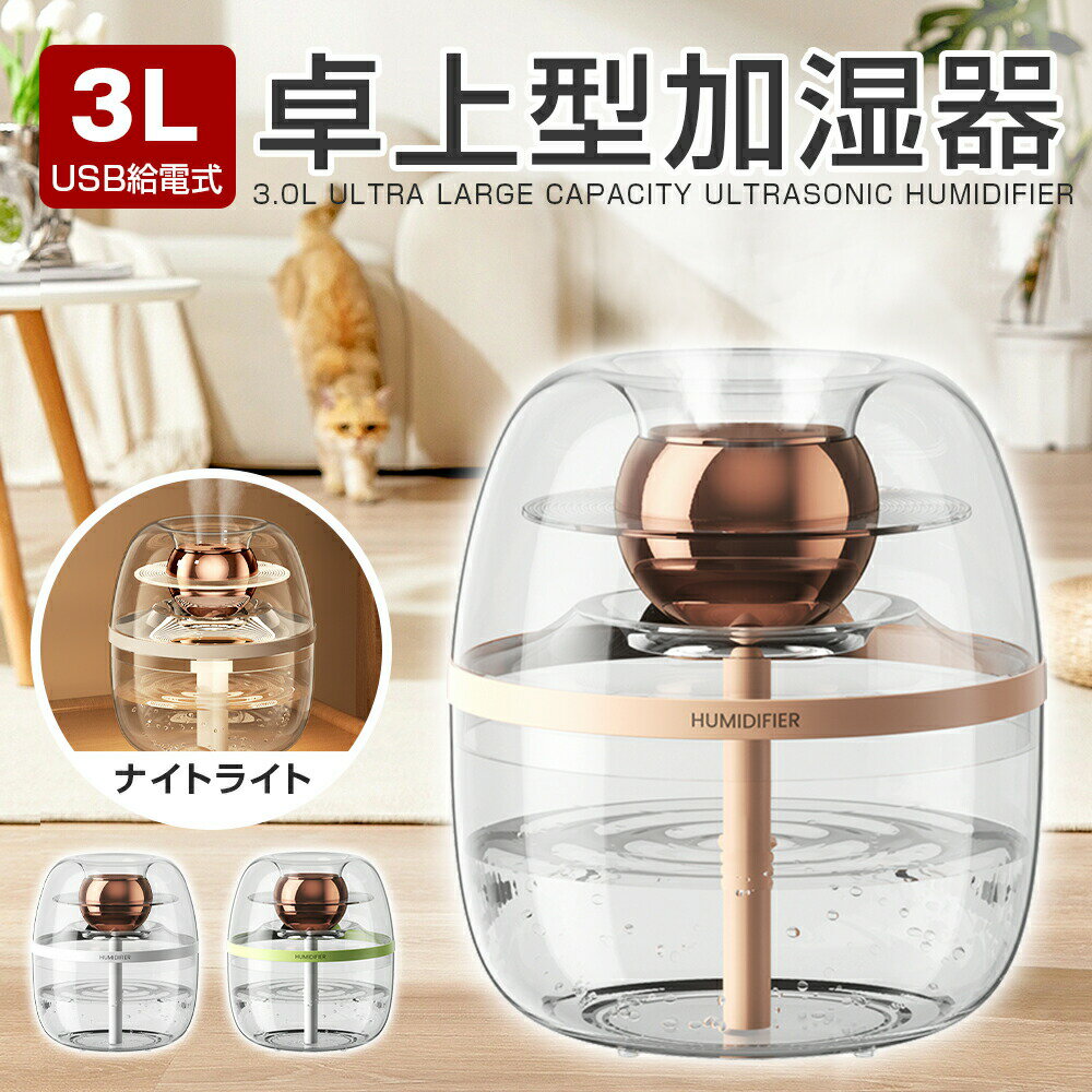家用 3L 大容量 加湿器 静音 USB 卓上 オフィス 寝室 乾燥対策 湿度調整 ミスト 空気清浄・・・
