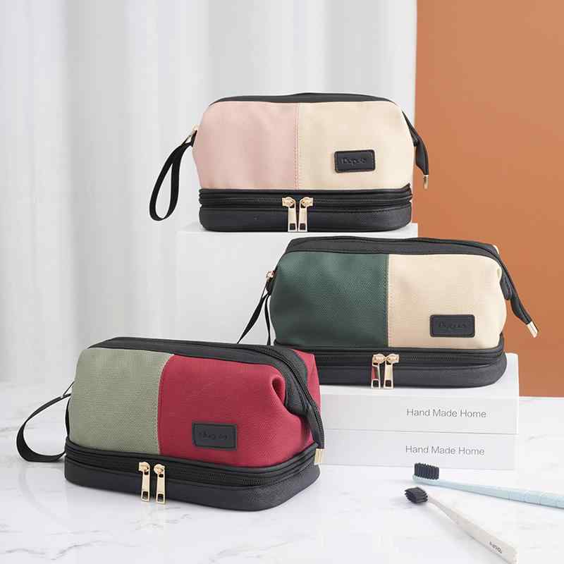 化粧ポーチ レディース 防水 大容量 ダブルレイヤー 旅行用 洗面用品 緑杏色 フェイクレザー 無地・・・