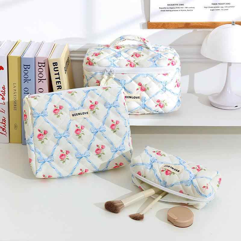 化粧ポーチ レディース 大容量 花柄 キルティング コットン かわいい 軽量 携帯用 旅行用 学生 ・・・