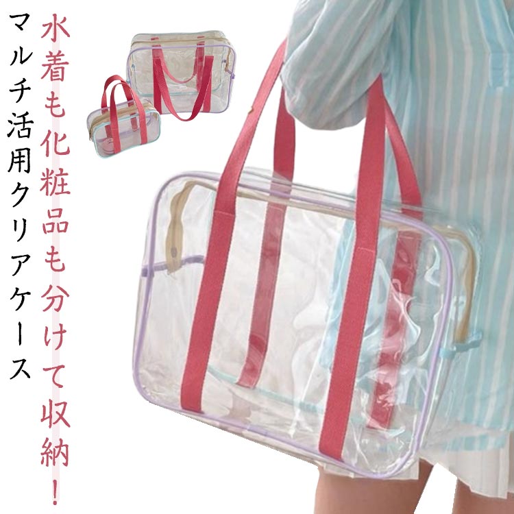 透明 化粧ポーチ 水泳 防水 大容量 収納バッグ 旅行用小物 クリアポーチ 見える化収納 軽量 両手提げ スポーツ収納 浴室用品収納 整理 フィットネス プールバッグ 旅行用