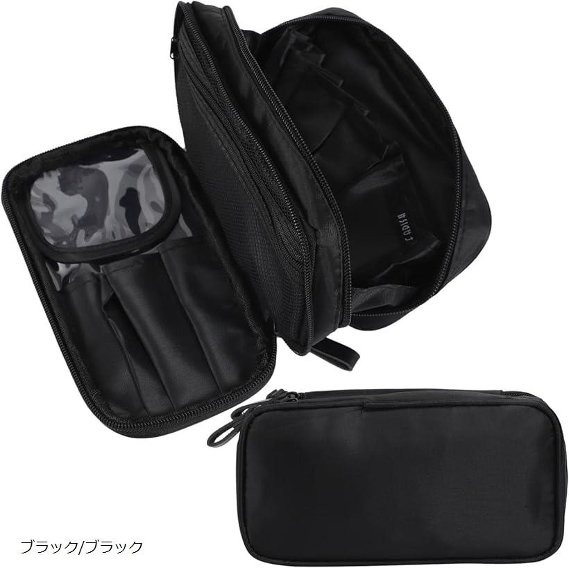 化粧ポーチ 大容量 仕切り 3層 機能的 コンパクト 整理できる 使いやすい がばっと開く ブラック・・・