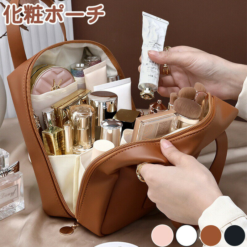 化粧ポーチ 防水 大容量 高級感 トラベルポーチ 手提げ コスメポーチ メイク収納 PUレザー モダ・・・