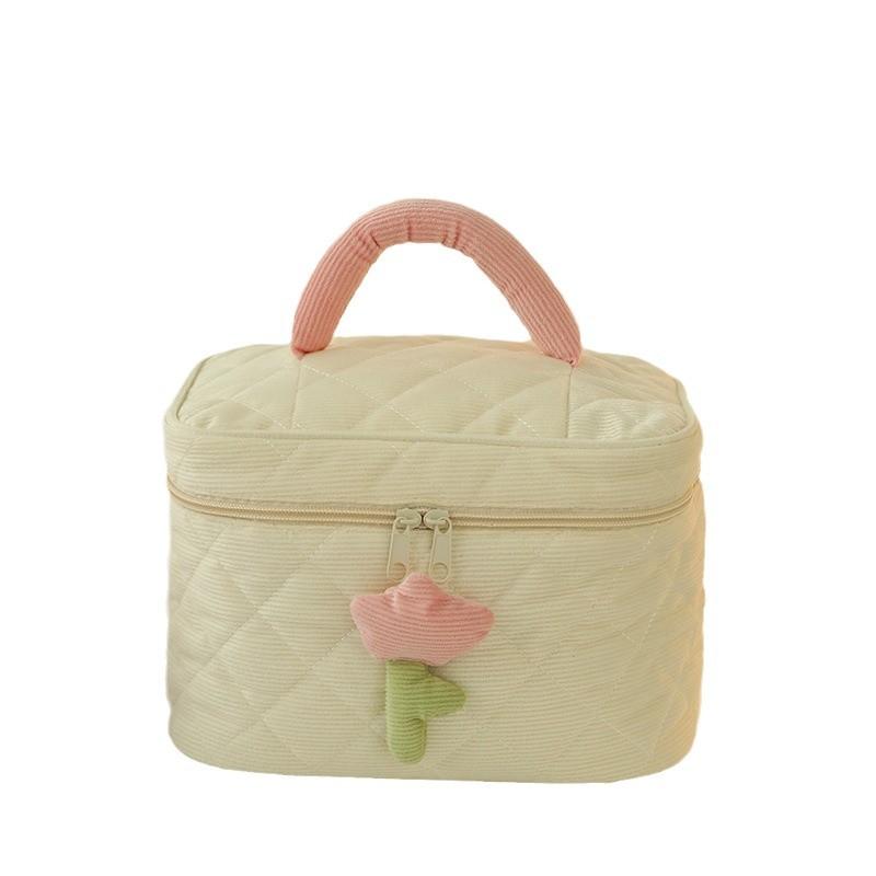 化粧ポーチ レディース かわいい カートゥーン クリーム色系 コーデュロイ 大容量 旅行用 メイクポ・・・