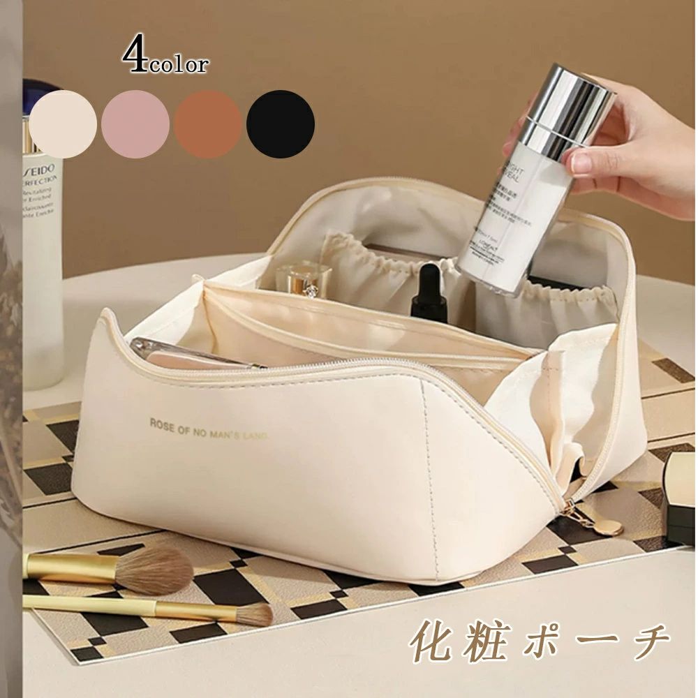 化粧ポーチ 大容量 機能的 ポーチ 自立 小物入れ 可愛い コスメポーチ トラベルポーチ メイクポーチ バニティケース コンパクト マチあり 大きめ 大容量 バニティバッグ 合皮 機能的