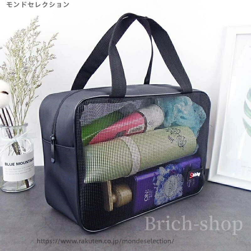 【送料無料】ブラック ユニセックス ジム 銭湯 お風呂 通気性】 【大容量 メッシュバッグ サウナバ・・・