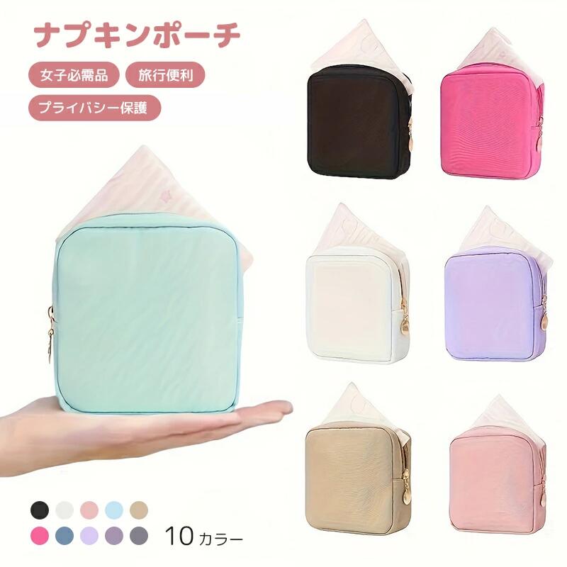 ナプキン ポーチ ナプキン入れ シンプル 大容量 生理用品 ナプキン収納 小物収納 安心 ボタン付き 化粧ポーチ 携帯 便利 タンポン 学校 通学 小学生 中学生 高校生 通勤 軽量 ハンカチ