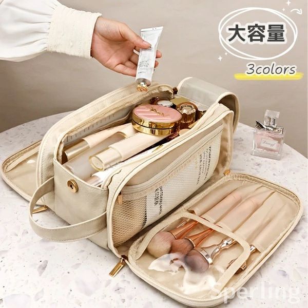 2層 化粧 バッグ大容量 ポータブル 男女 スキン ケア 製品 収納 ボックス 豪華 シンプル ハー・・・