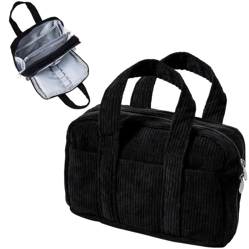 NIGNYA ペンケース 大容量 化粧ポーチ メイクポーチ 小物入れ コーデュロイ ハンドル付き 子・・・