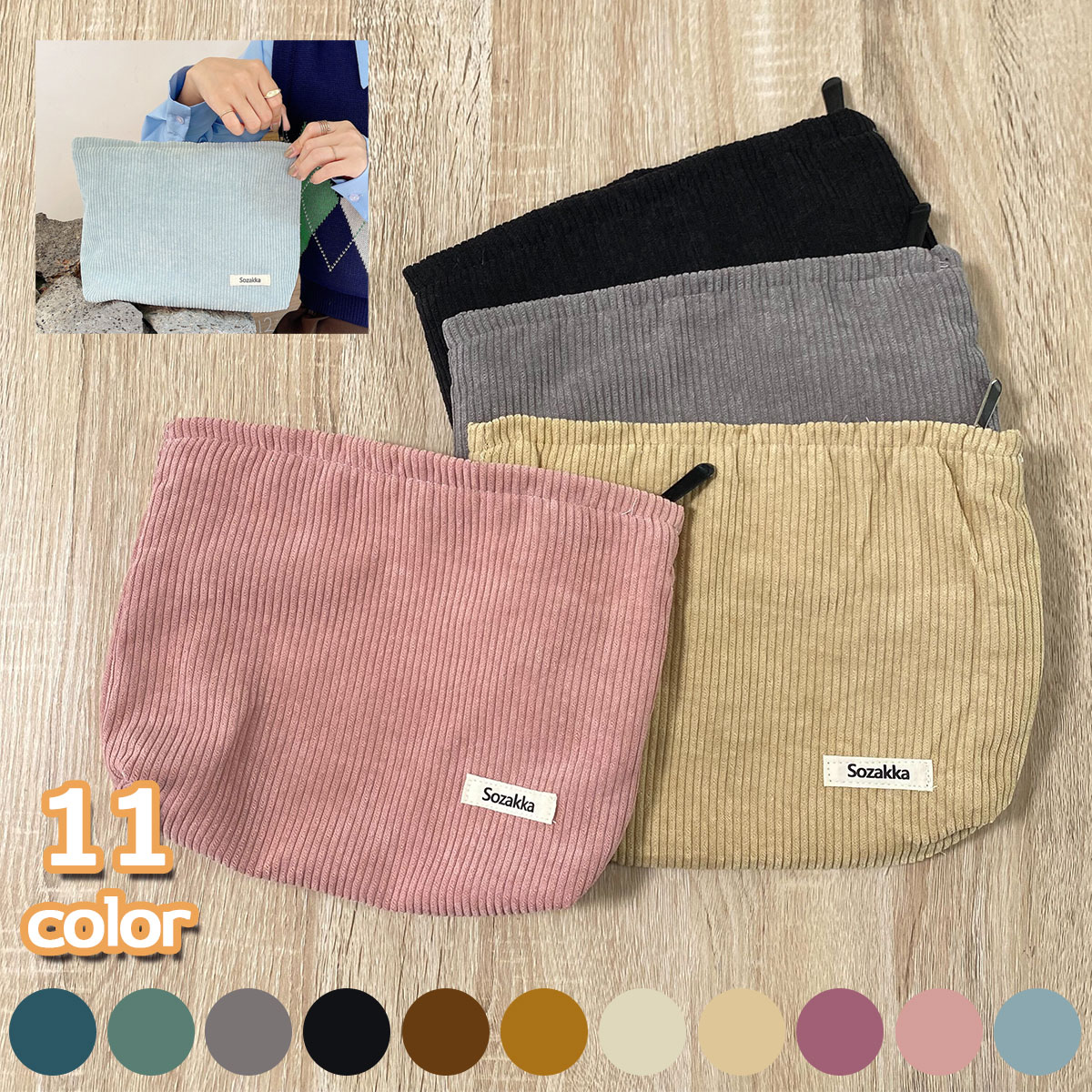 カラバリ豊富!大人可愛いコーデュロイポーチ!柔らかいコーデュロイ素材が魅力の、ふんわり可愛い大人のマルチポーチ。毎日のコーディネートにそっと彩りをプラスします。