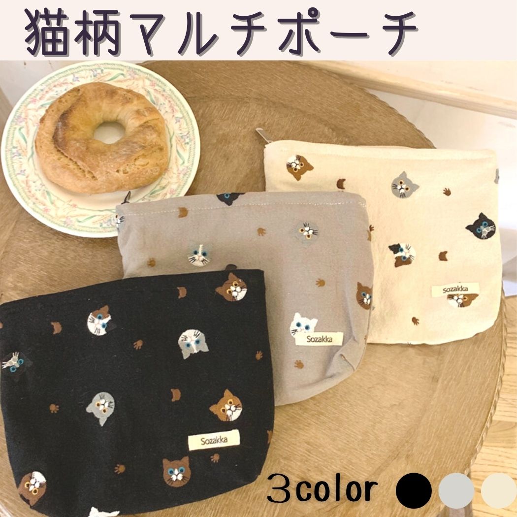 化粧ポーチ ねこ 猫 ポーチ 小物入れ かわいい 大きめ 化粧 コスメポーチ 大容量 化粧品 収納 メイク コスメ レディース おしゃれ 女子 トラベル 旅行 布製 亜麻