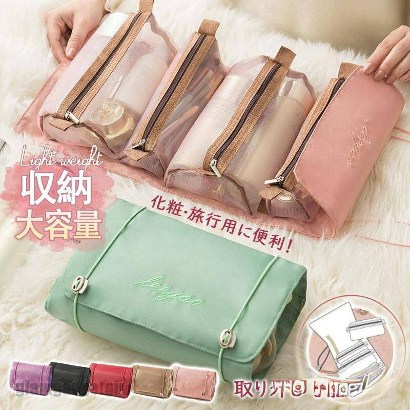 送料無料 トラベルポーチ 吊り下げ 4in1 化粧品ポーチ 旅行用 収納 軽量 出張 衣類 大容量 ・・・
