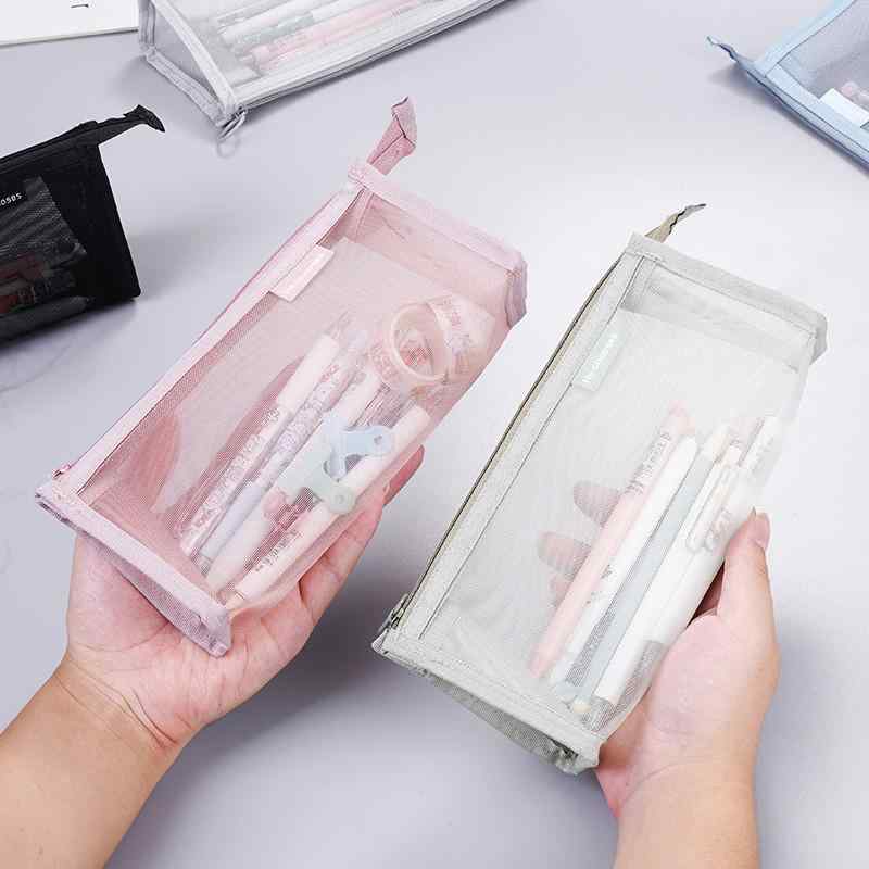 ペンケース 大容量 ナイロン メッシュ 文具袋 化粧ポーチ 学生 筆箱 ブラック ホワイト グレー ・・・