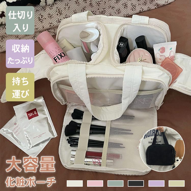 メイクポーチ 化粧ポーチ トラベルポーチ 大容量 大きめ 軽量 仕