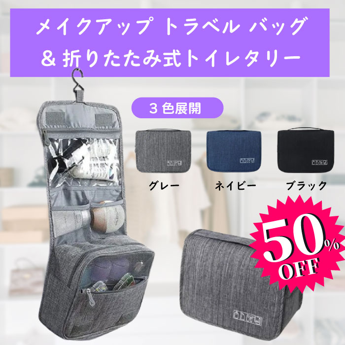 【楽天スーパーSALE】50%OFF!メイクアップ トラベル バッグ&折りたたみ式トイレタリーバッグ・・・
