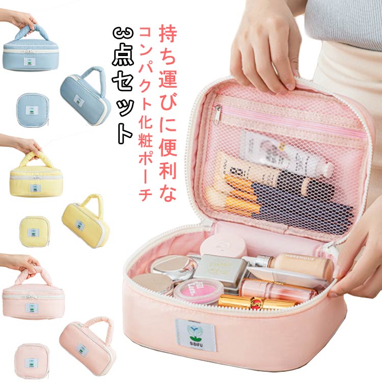 メイクポーチ 3点セット ナイロン コスメポーチ 化粧ポーチ 大容量 自立 撥水 使いやすい 持ち歩・・・