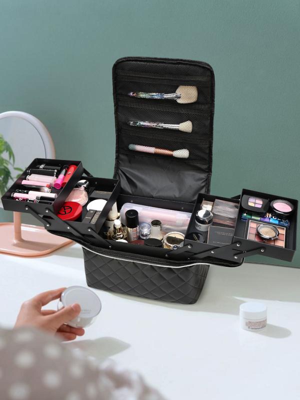 収納バッグ 格子柄 大容量 豪華感 メイクブラシ 携帯用 化粧ポーチ・・・