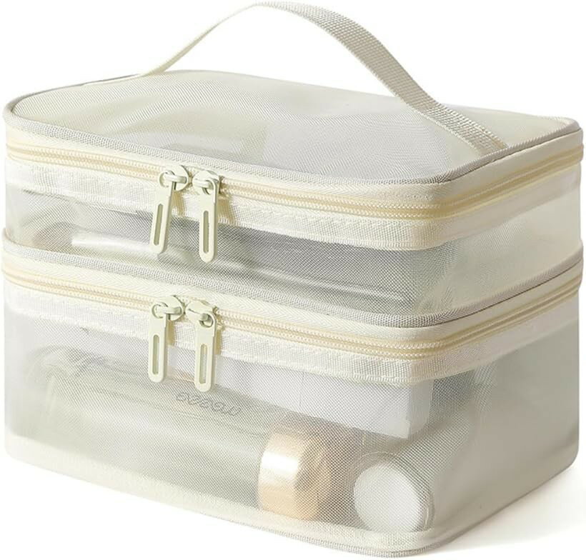 化粧ポーチ メイクボックス コスメポーチ トラベルポーチ 透明 化粧 大容量 バッグ メイクポーチ 二段 収納 小物入れ 旅行用 トラベルグッズ 出張 機能的