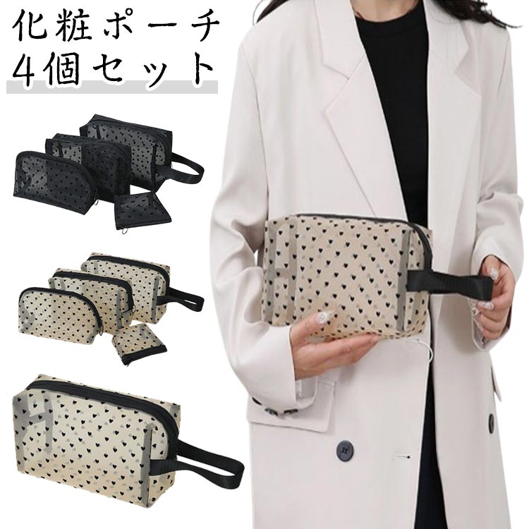 化粧ポーチ コスメ レディース バッグ 透明 メッシュ ポーチ 機能的 化粧品収納バッグ 大容量 持ち運び 4サイズ ブラウス カーキ 4個セット(01+02+03+04)