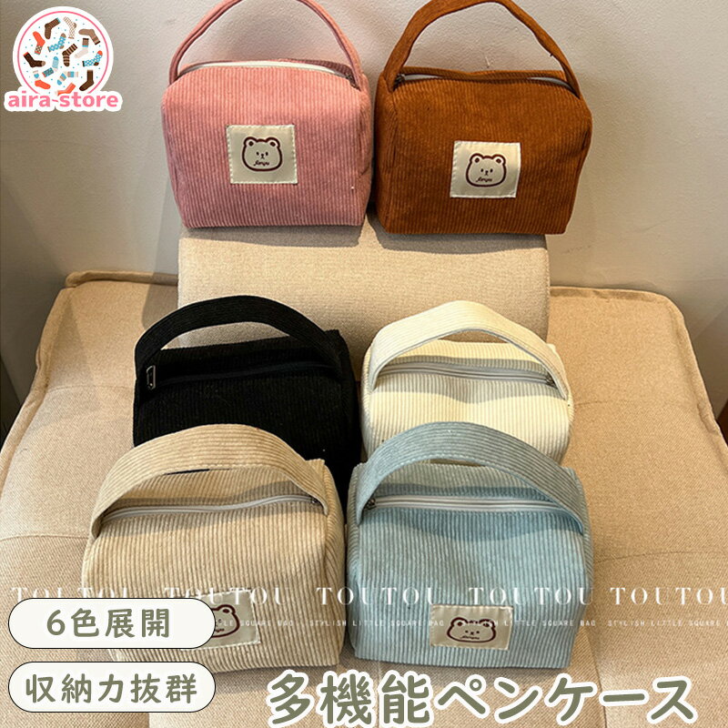 多機能ペンケース SNS話題 収納力抜群 筆箱 化粧ポーチ 機能的 コーデュロイ 大きめ 自立 持ち・・・