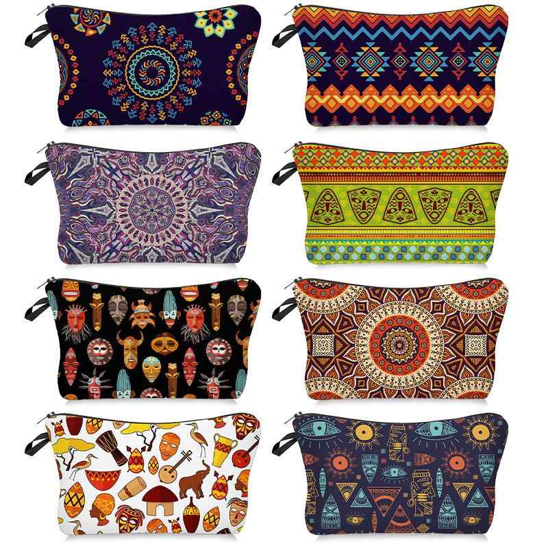 ポーチ レディース 軽量 大容量 携帯用 幾何学模様 アフリカ民族柄 プリント 化粧ポーチ メイクポ・・・