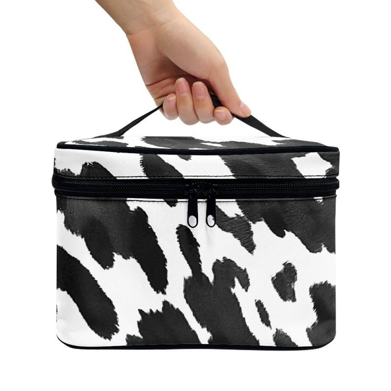 化粧ポーチ レディース 大容量 ダブルファスナー 牛柄 旅行 手提げ かわいい メイクボックス コス・・・