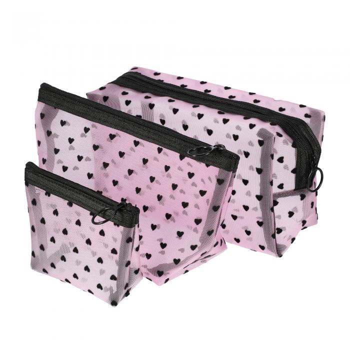 化粧ポーチ レディース ナイロン 幾何学模様 大容量 植毛 ハート柄 メッシュ 通気性 ジッパー式 ・・・