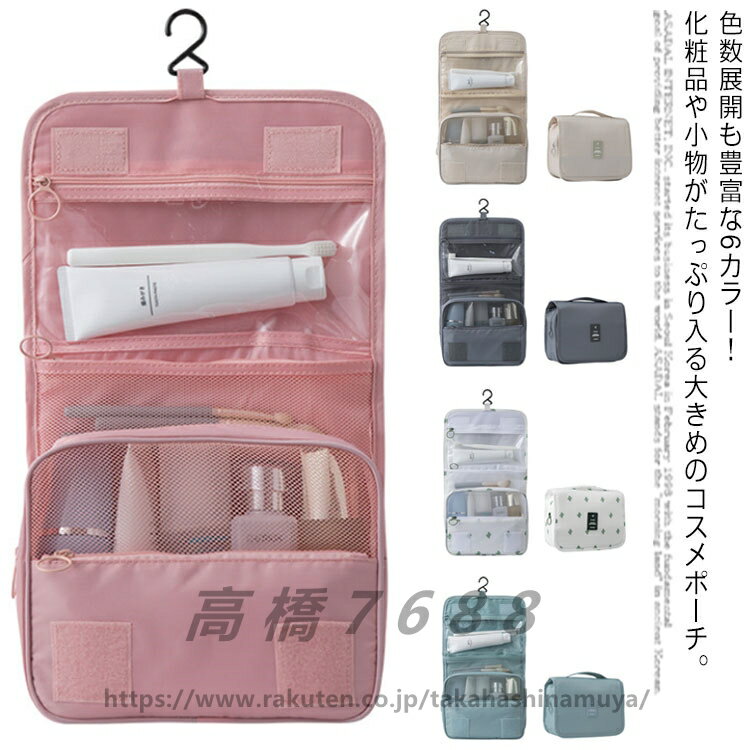 ポーチ 旅行用 トラベル ハンガー 立てる収納 コスメバッグ バスルームポーチ シンプル ブラシ入れ付き 仕切り 乾湿両用 洗面用具 化粧品 大きめ 修学旅行 手提げ バッグ 小物 整理