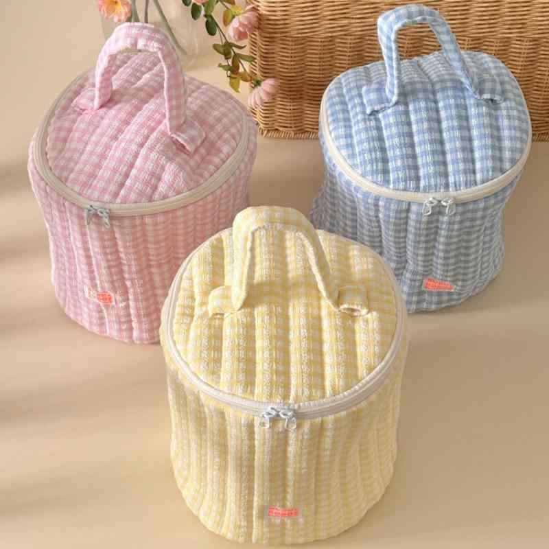 化粧ポーチ レディース 格子柄 かわいい キルティング 大容量 コットン 収納 整理 持ち運び 旅行・・・