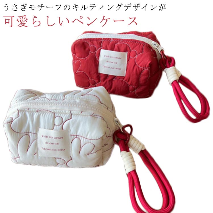 かわいい 兎 ペンケース 文房具 うさぎ オシャレ 女子 コスメポーチ 化粧ポーチ ガジェットポーチ 筆入れ キルト 筆記用具 大容量 筆箱