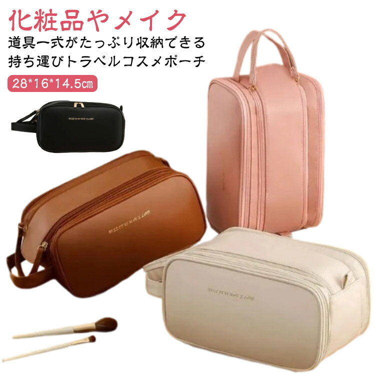 化粧ポーチ 大容量 ダブルレイヤー PU 防水 旅行用 洗面用品 収納バッグ 普段使い おしゃれ パ・・・
