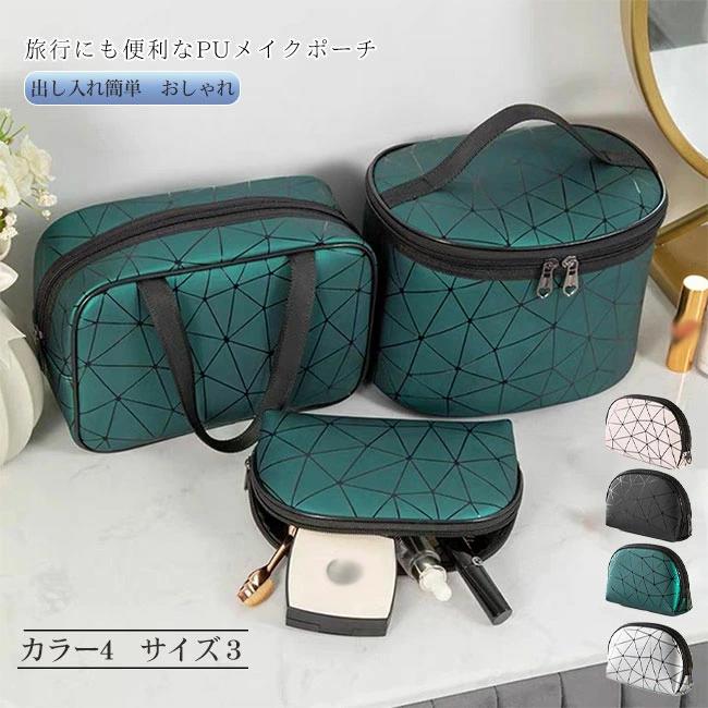 女性用PU化粧ポーチ、高価値、大容量、旅行用トイレタリーバッグ、収納、ポータブル、防水、ハンドル付き・・・
