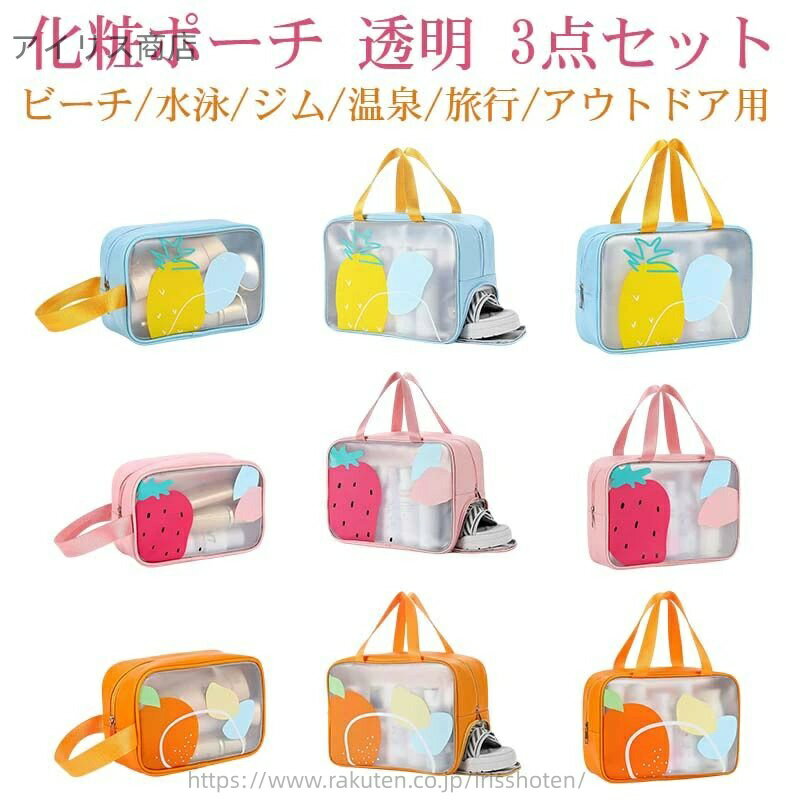【送料無料】化粧ポーチ 透明 3点セット PVC化粧ポーチ かわいい 大容量 防水 ビニールポーチ ・・・