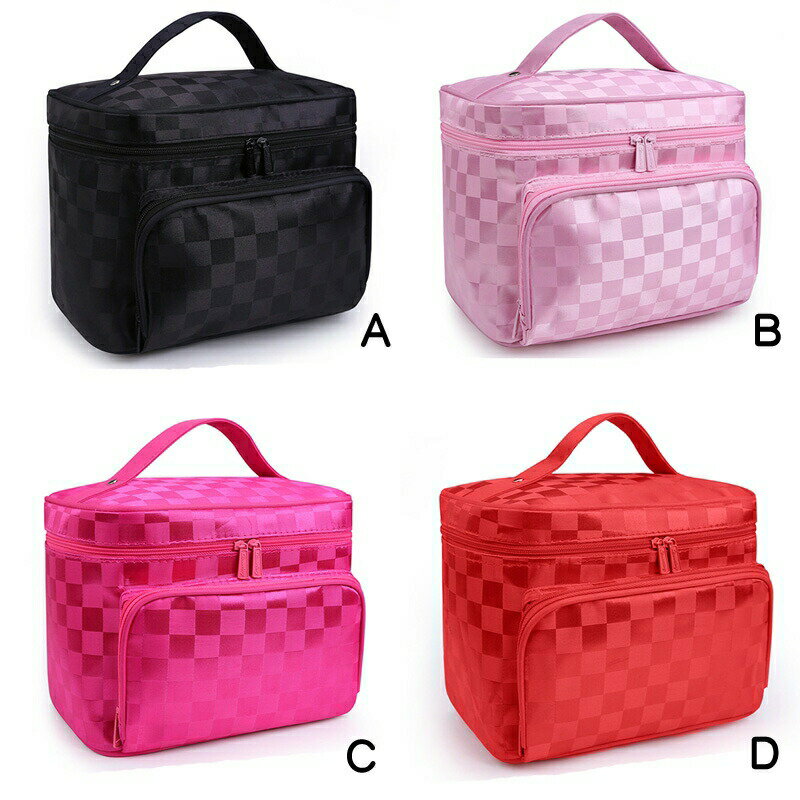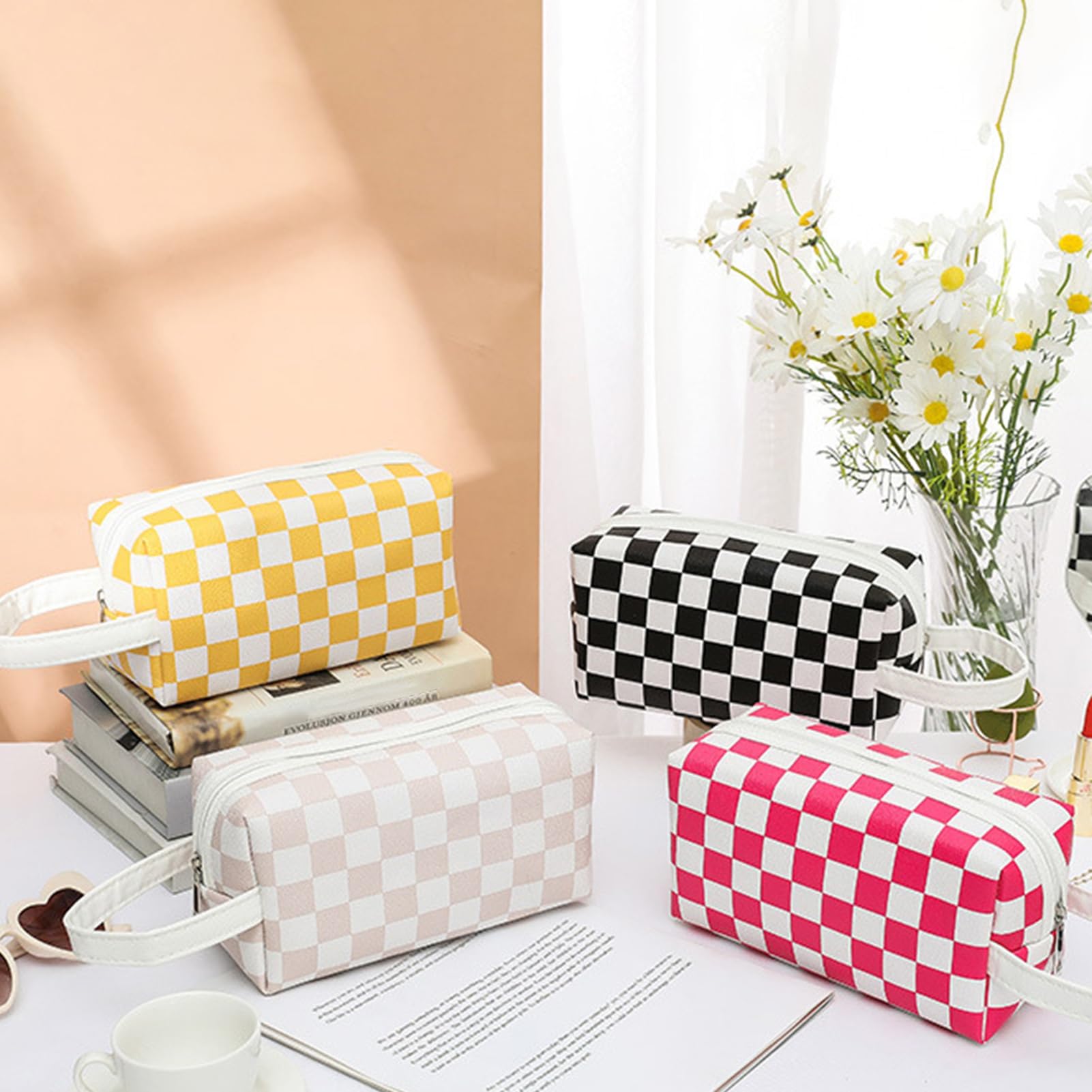化粧ポーチ 女性用化粧品バッグ チェックプリント メイクアップバッグセット 3袋付属 大容量 持ち運・・・