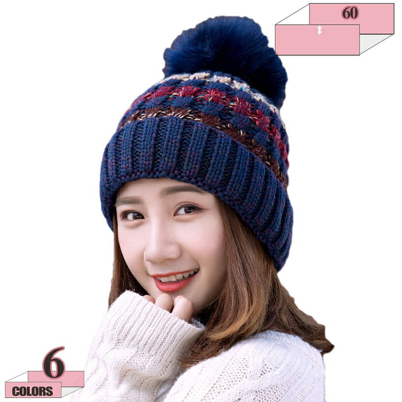 ニット帽 レディース ボンボン 付き 裏起毛 キャップ ニットキャップ 帽子 シンプル オシャレ 秋・・・