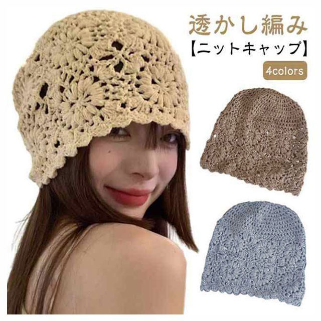 透かし編み ワッチキャップ レディース レース ニット帽 春 夏 帽子 蒸れない 医療用帽子 抗がん・・・
