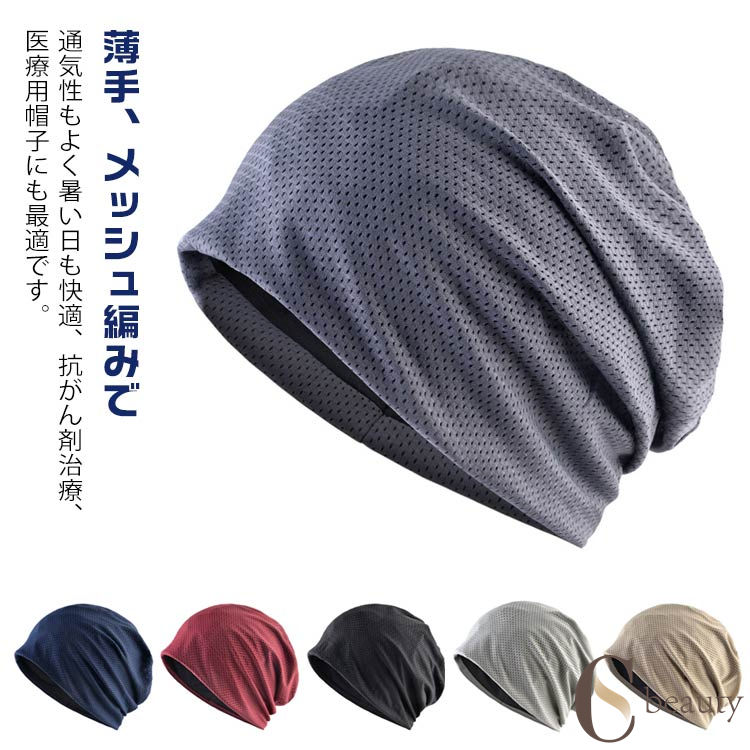 通気性に優れたメッシュ素材のサマーニットキャップ。男性女性兼用で医療用にも適しています。