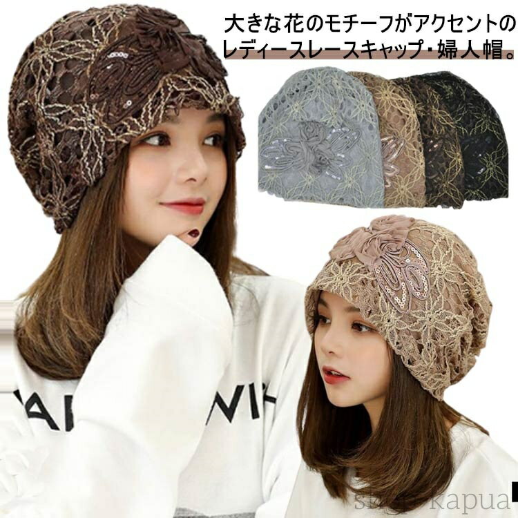 レース 帽子 レースヘアキャップ ケア帽子 医療用帽子 キャップ レース レディース ヘアキャップ 夏 通気性 エレガント 蒸れにくい 白髪 隠し 花 かわいい 花柄 フラワー 就寝