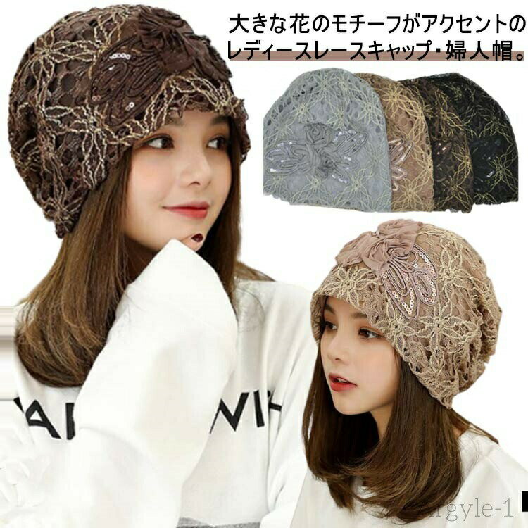 夏用 春 かわいい 夏 就寝用 花柄 ケア帽子 スパンコール 春夏 レースタイプ 医療用帽子 医療用・・・