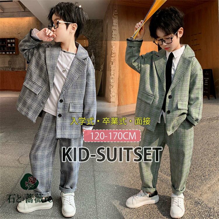 卒業式 スーツ 男の子 パンツスーツ ジャケット+ズボン120-170cm グレー グリーン カッコイイ