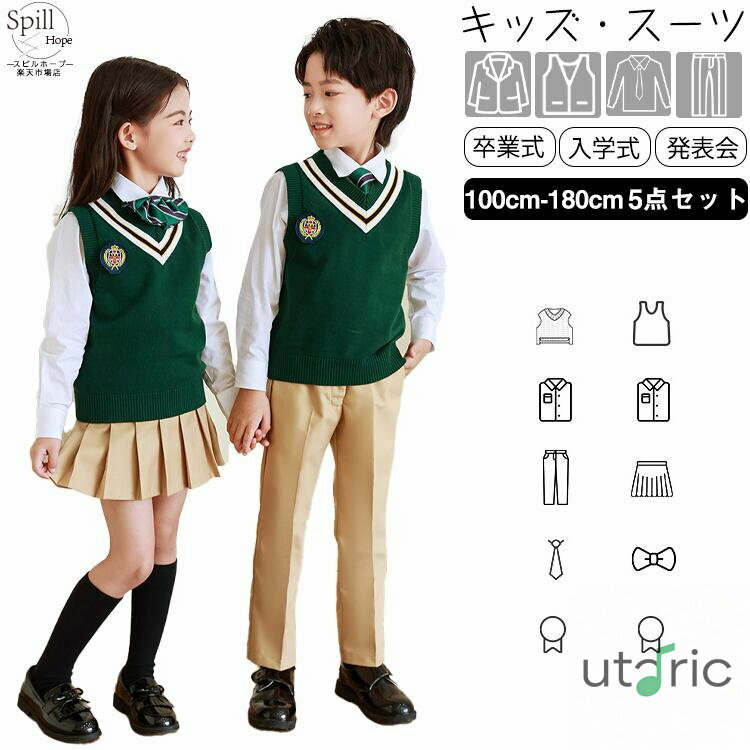 スーツ 子供 入学式 キッズ 5点セット 卒業式 フォーマル 小学生 中学生 男の子 女の子 制服 ・・・