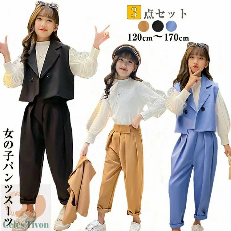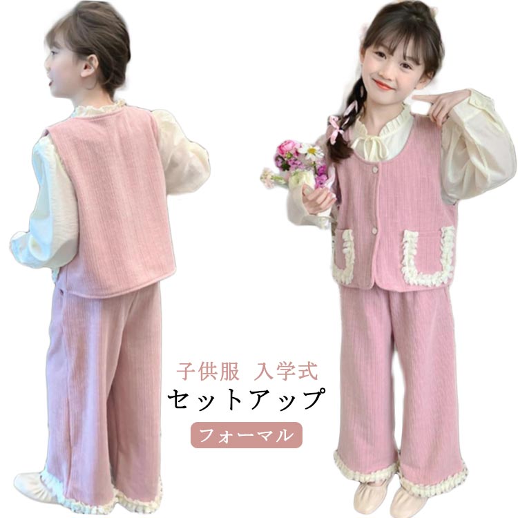 子供服 女の子 スーツ フォーマル セット 発表会 七五三 入学式 卒業式 おしゃれ キッズ ガールズ 長袖トップス ベスト パンツ