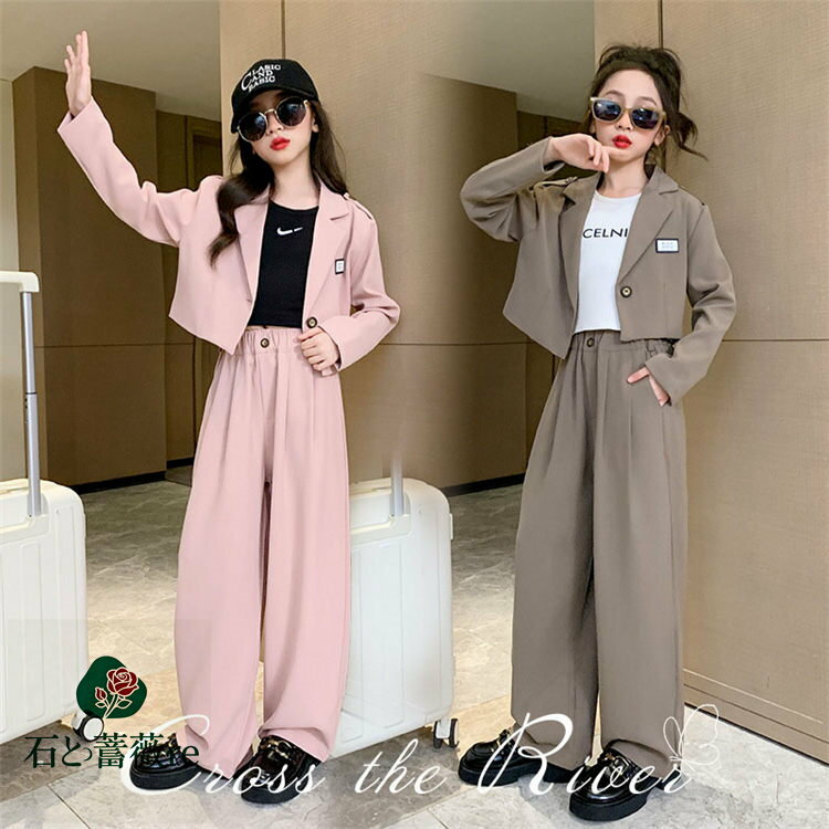 入学式 卒業式 スーツ アウター+パンツ 女の子 セットアップ 2点セット 小学生 子供服 中学生 高校生 パンツスーツ カジュアルパンツセット