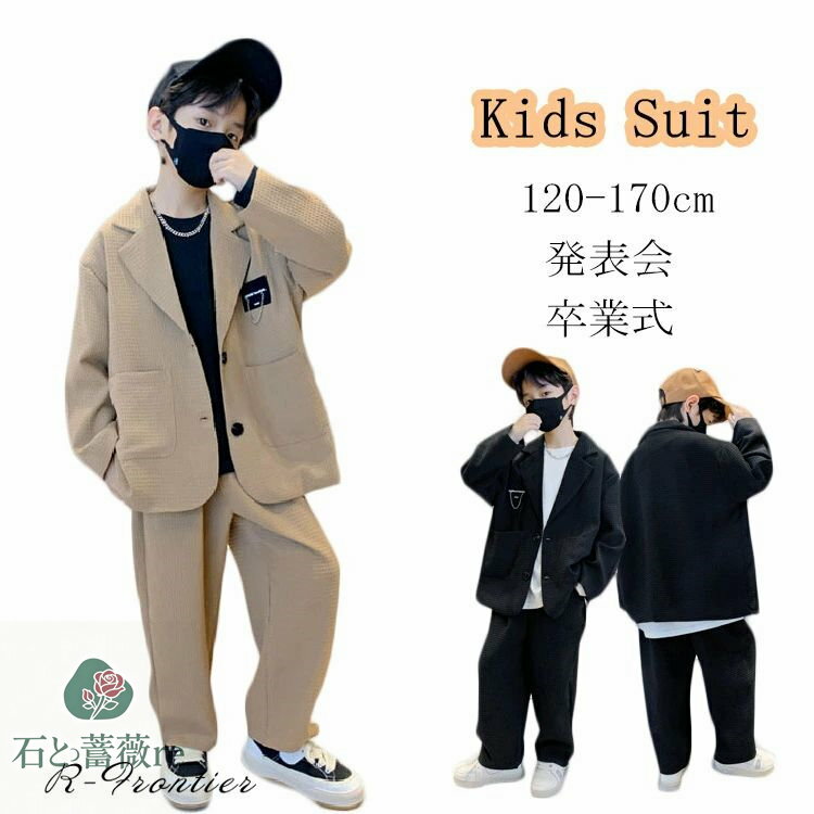 卒業式 スーツ 男の子 160 韓国 制服 卒服 小学生 入学式 B系 パンツスーツ 黒 茶色 2点・・・