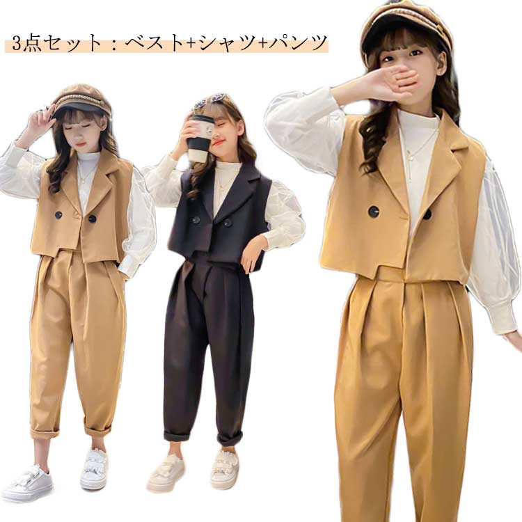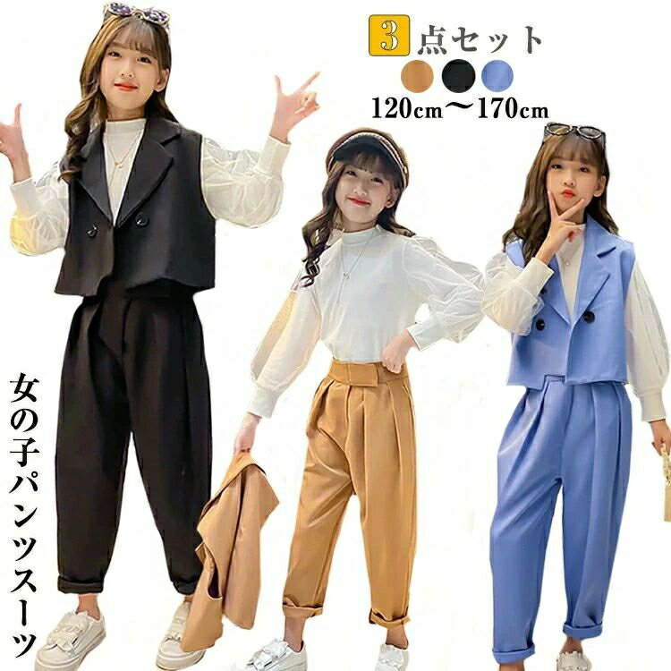 パンツスーツ 女の子 キッズ ダンス衣装 セットアップ 卒業式 スーツ 女の子 フォーマル セット ベスト トップス 七五三 入学式 発表会 演出服 パンツ 子供服 上下セット チアガール