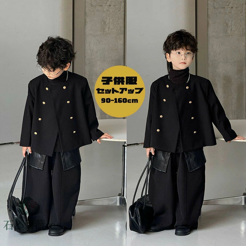 パンツスーツ セットアップ 女の子 入学式 卒業式 服 女の子 かっこいい 韓国 子供服 女の子 黒・・・