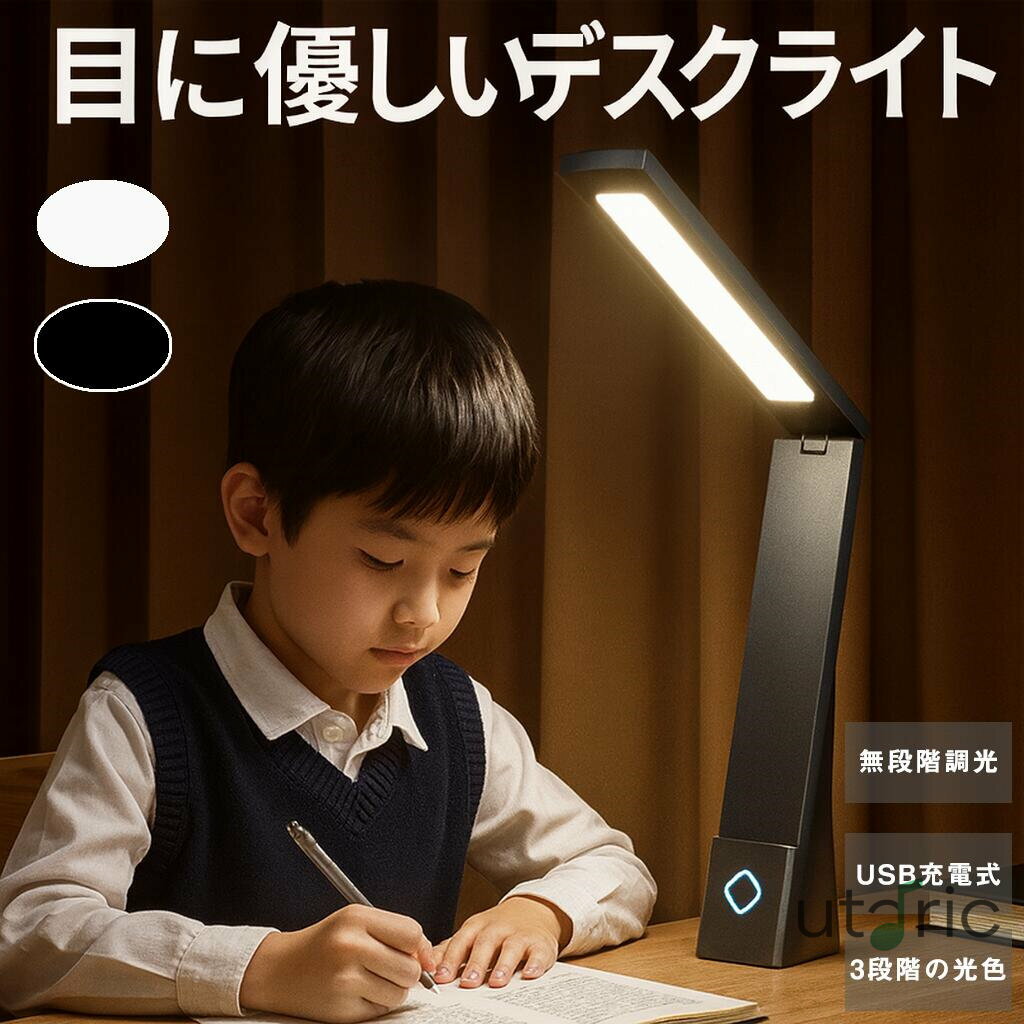ライト デスクライト LED LEDデスクライト 横型 充電式 軽量 USB充電 調光 無段階調光 角度調整 高さ調整 3色切替 タッチセンサー コンパクト 読書灯 勉強用 ベッドサイド 省スペース